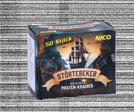 Störtebeker – Der Donner der sieben Meere, für maximale Lautstärke in der Silvesternacht! Der Kracher macht dem berühmtesten deutschen Piraten alle Ehre! Unser Störtebeker überzeugt mit einem extrem lauten Knall trotz kleiner Größe. Die 50 Schwarzpulver-Kracher sind leistungsstark und sorgen für einen markanten Schallimpuls.